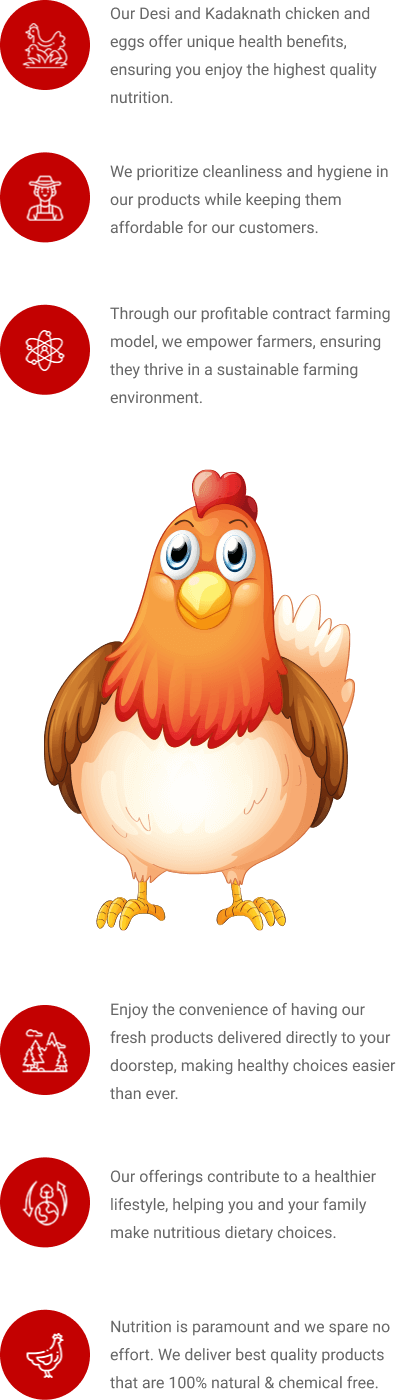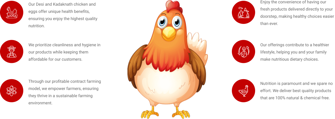 Our vision is to make nutritious chicken and eggs accessible across India, promoting well-being and fostering a healthier lifestyle for our customers.